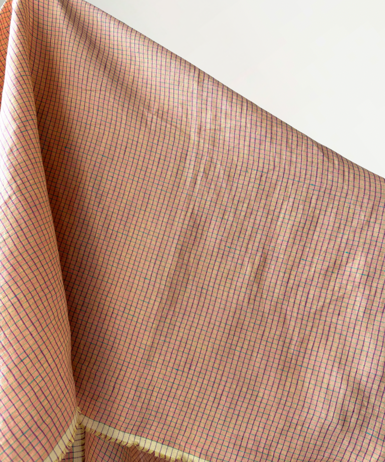 Summer Love: 100% Linen Peach Check 130 gsm $40 pm