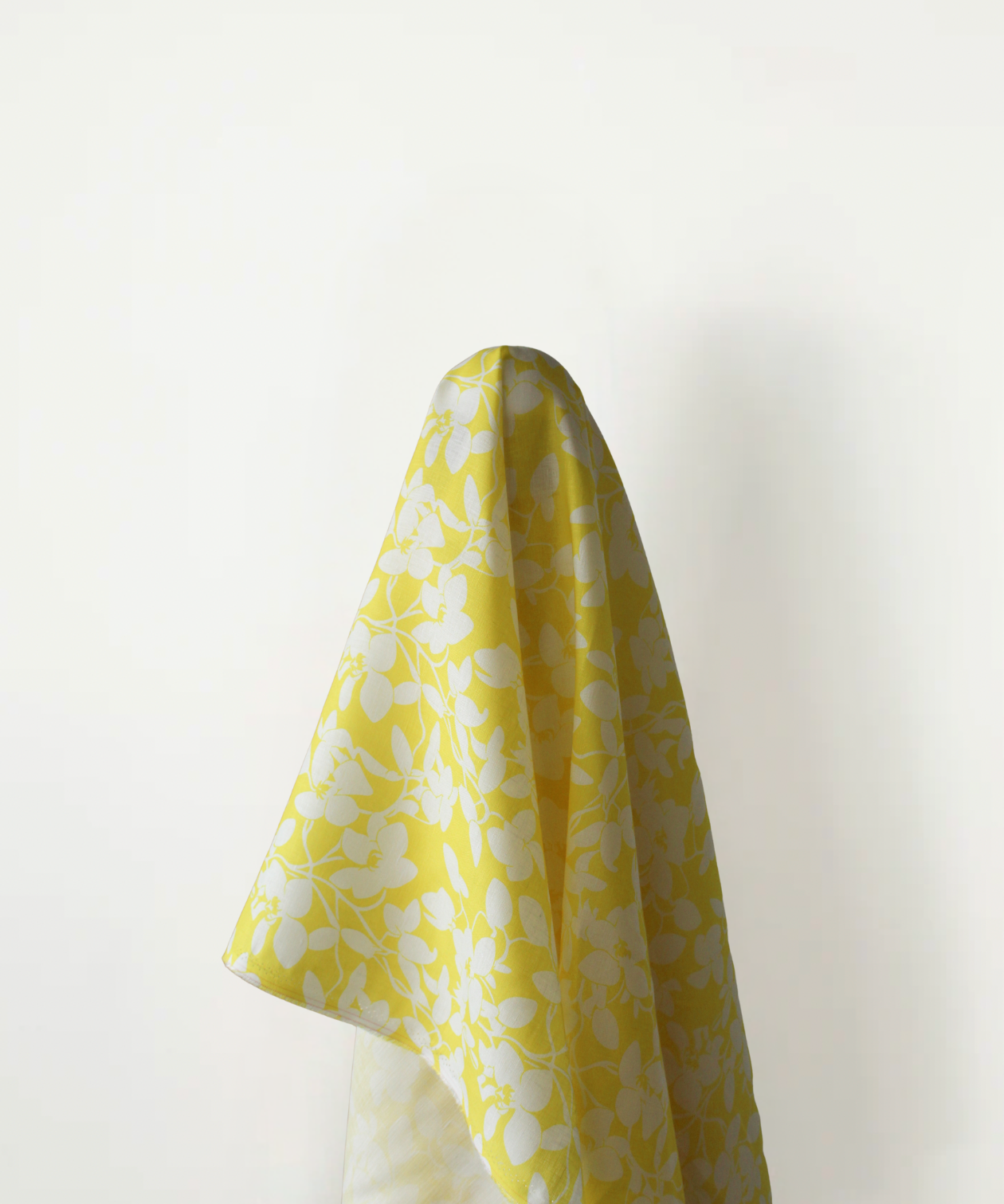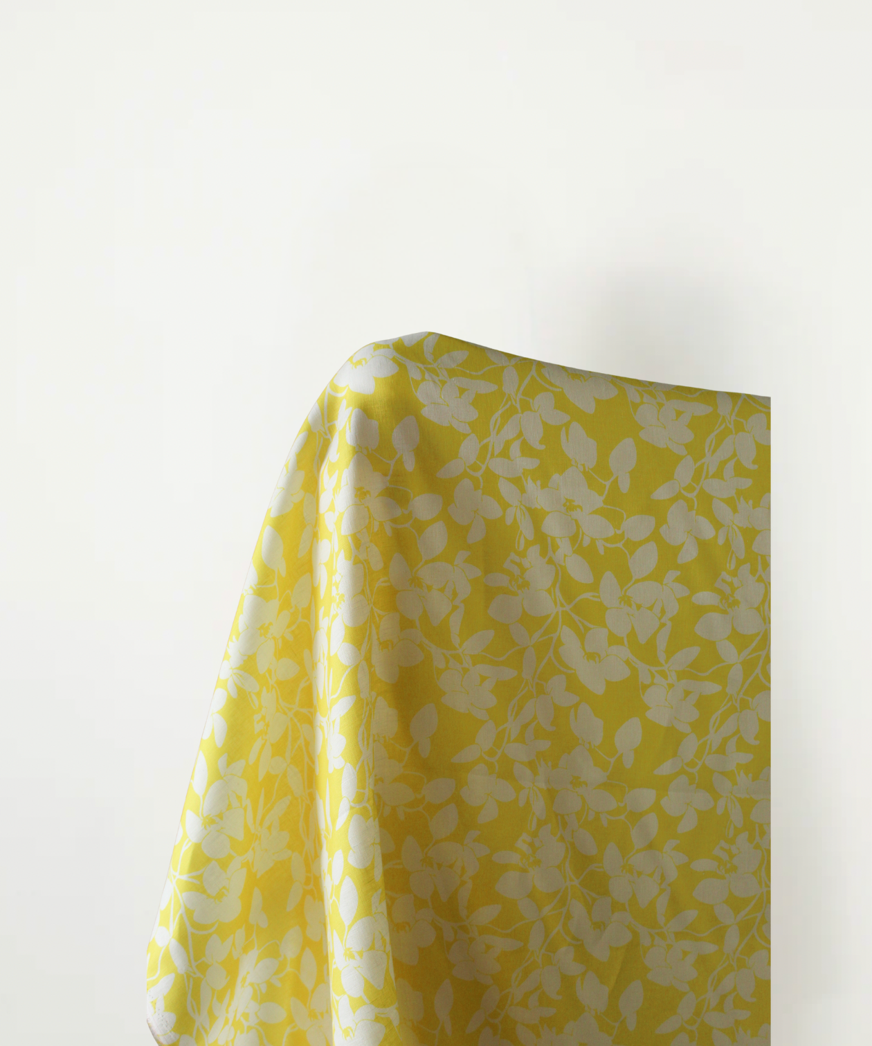 Summer Love: 100% Linen, Lemon & White Singapore Orchid Print 140 cm w, 145 gsm $40