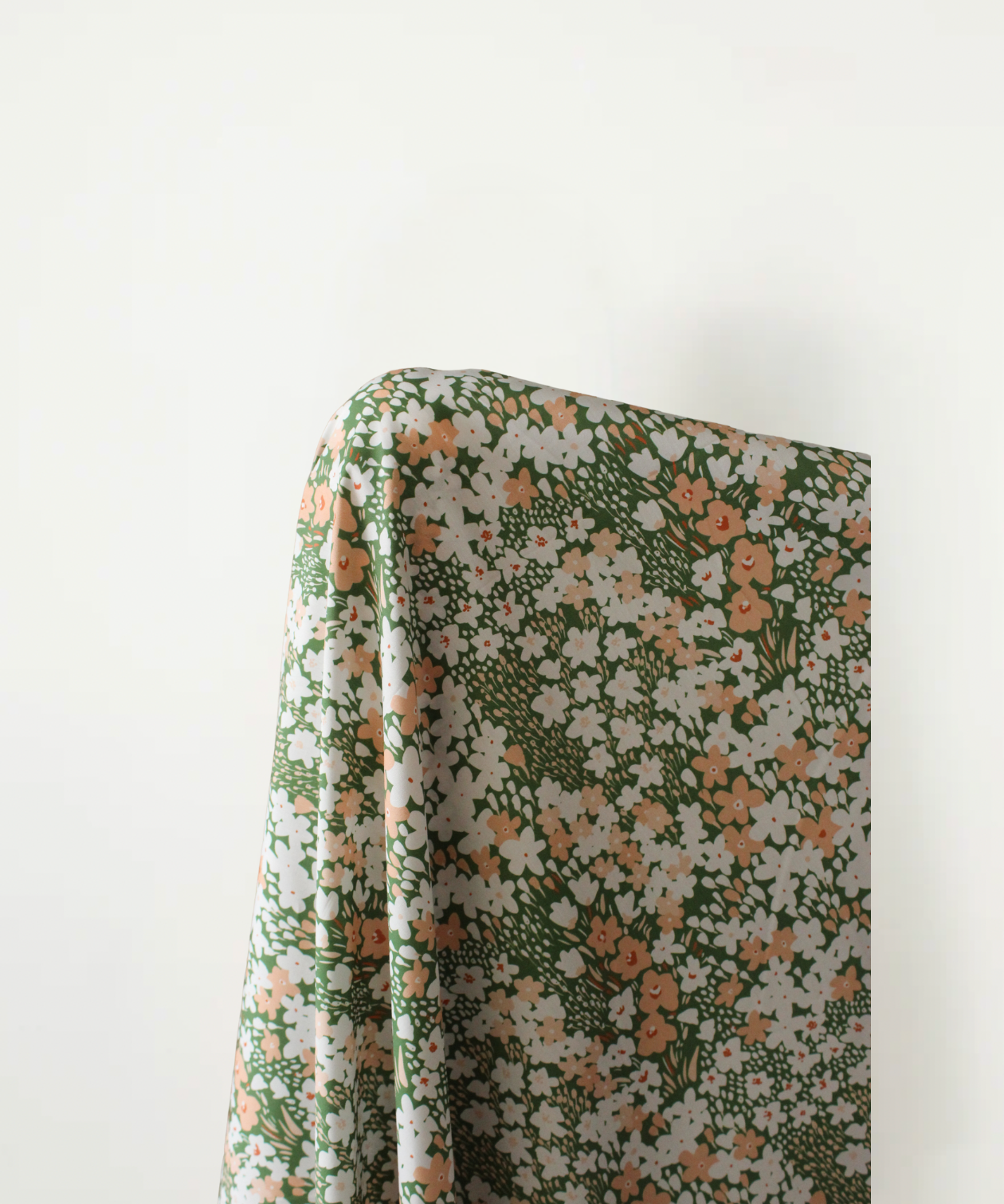 Summer Love 100% Cotton Green Peach & White Flower Print 140 cm w, 100 gsm $29 pm