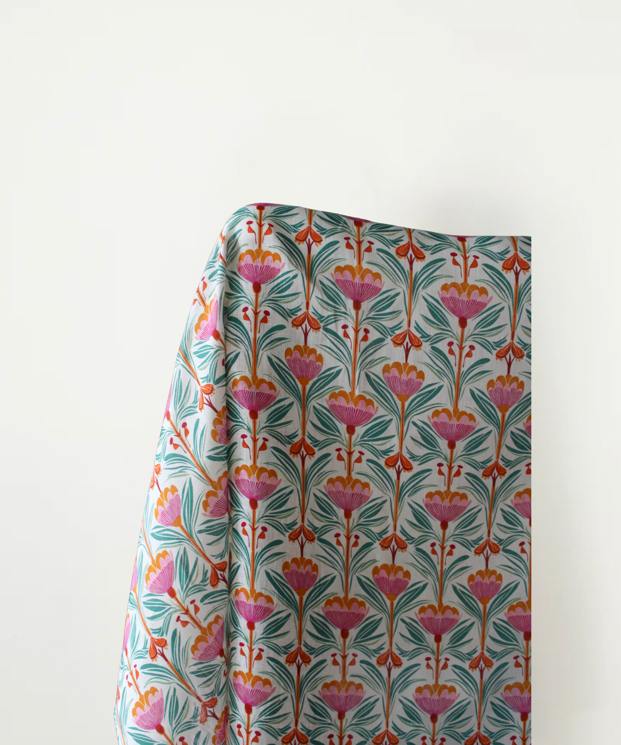 Summer Love: 100% Linen, Art Noveau Flowers Print 140 cm w, 145 gsm $40