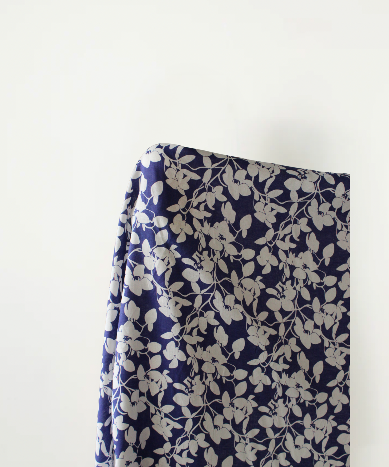 Summer Love: 100% Linen, Navy & White Singapore Orchid Print 140 cm w, 145 gsm $40