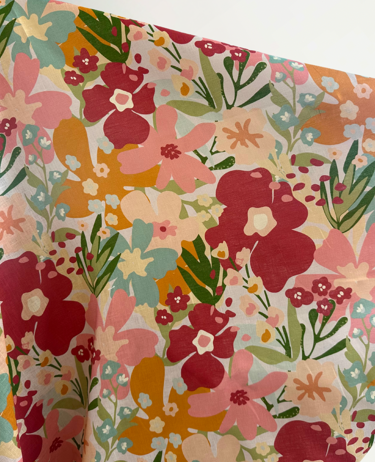 Feeling like some colour - check out this 100% linen print! Versatile and stylish, this fabric is perfect for a variety of garments including skirts, shirt dresses, and palazzo pants.