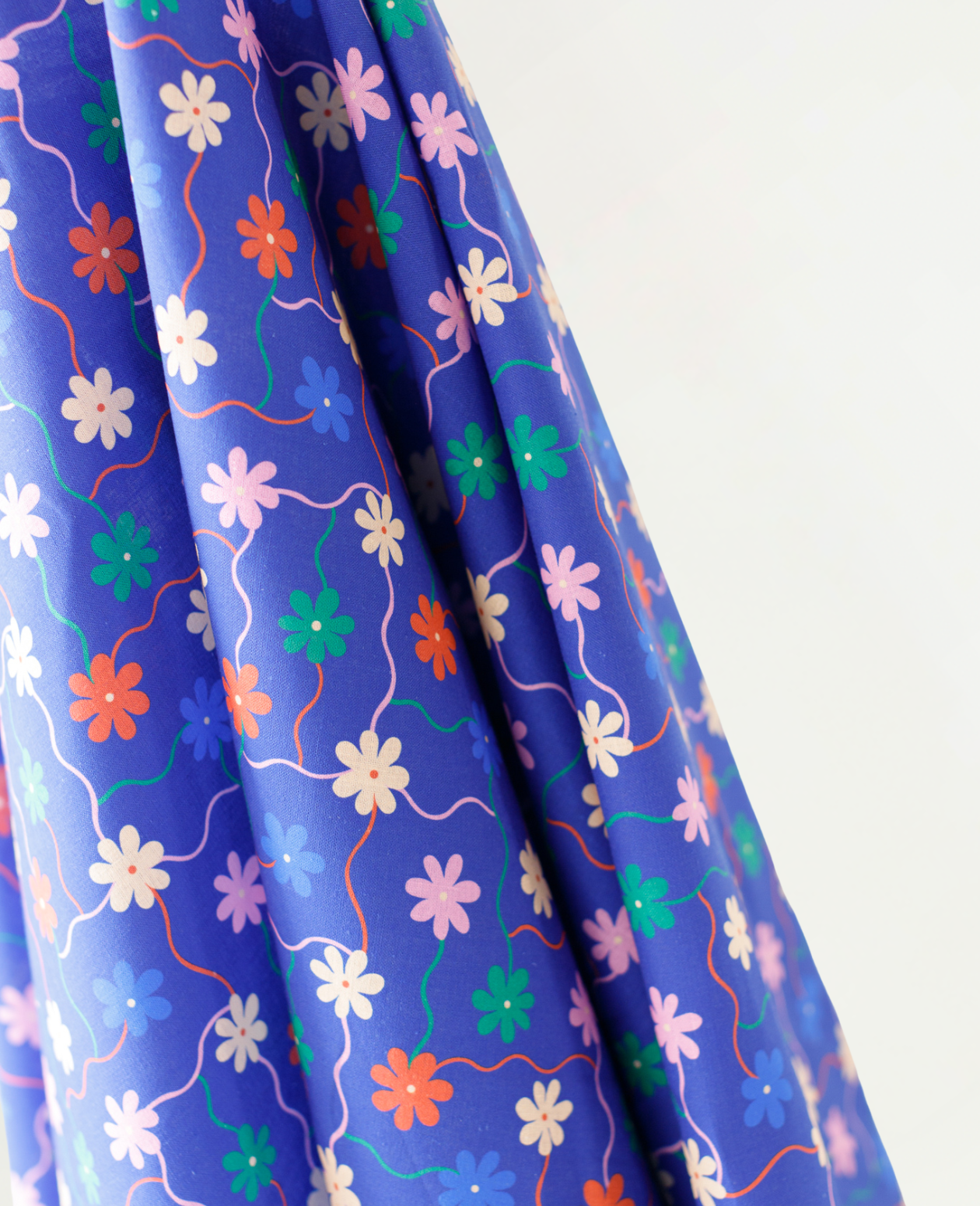 All Summer Long Cotton Linen Blue Multi Colour Flowers on a Vine Print 135 gsm $32.00 pm