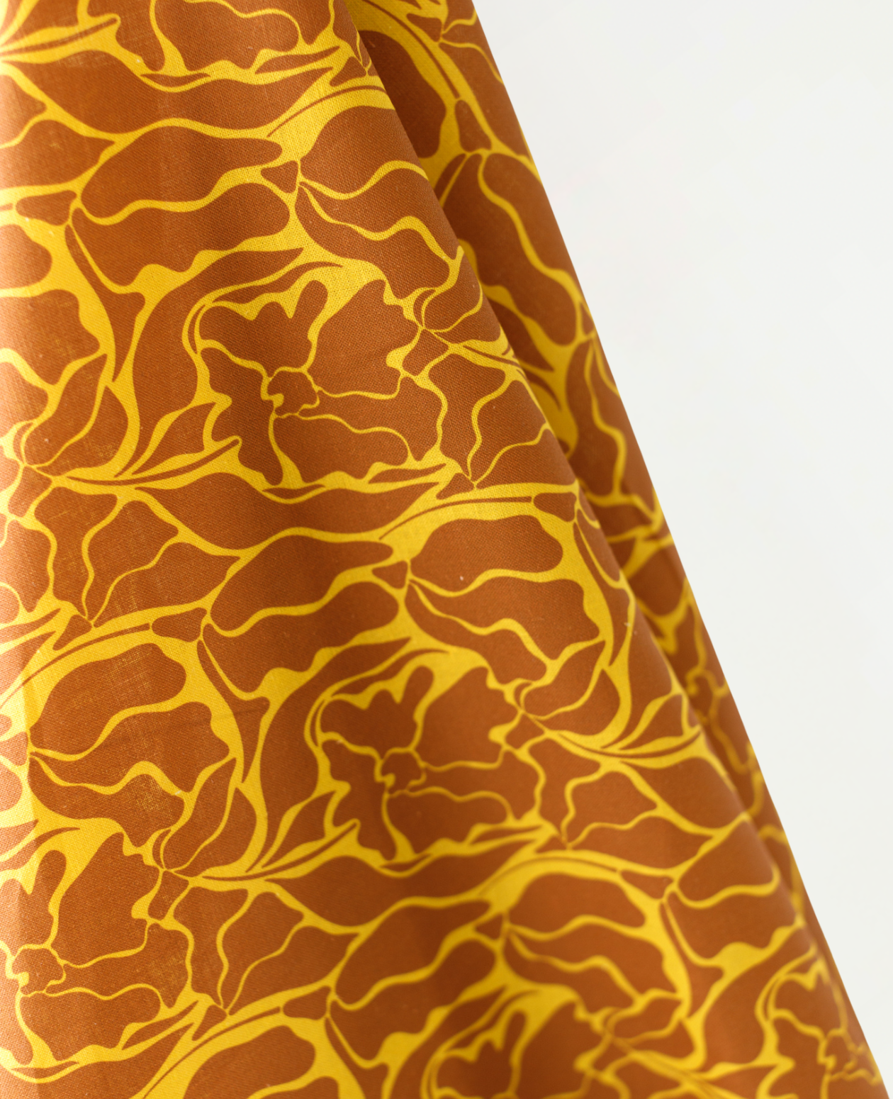 All Summer Long Cotton Linen Gold & Brown Flower Print 135 gsm $32.00 pm