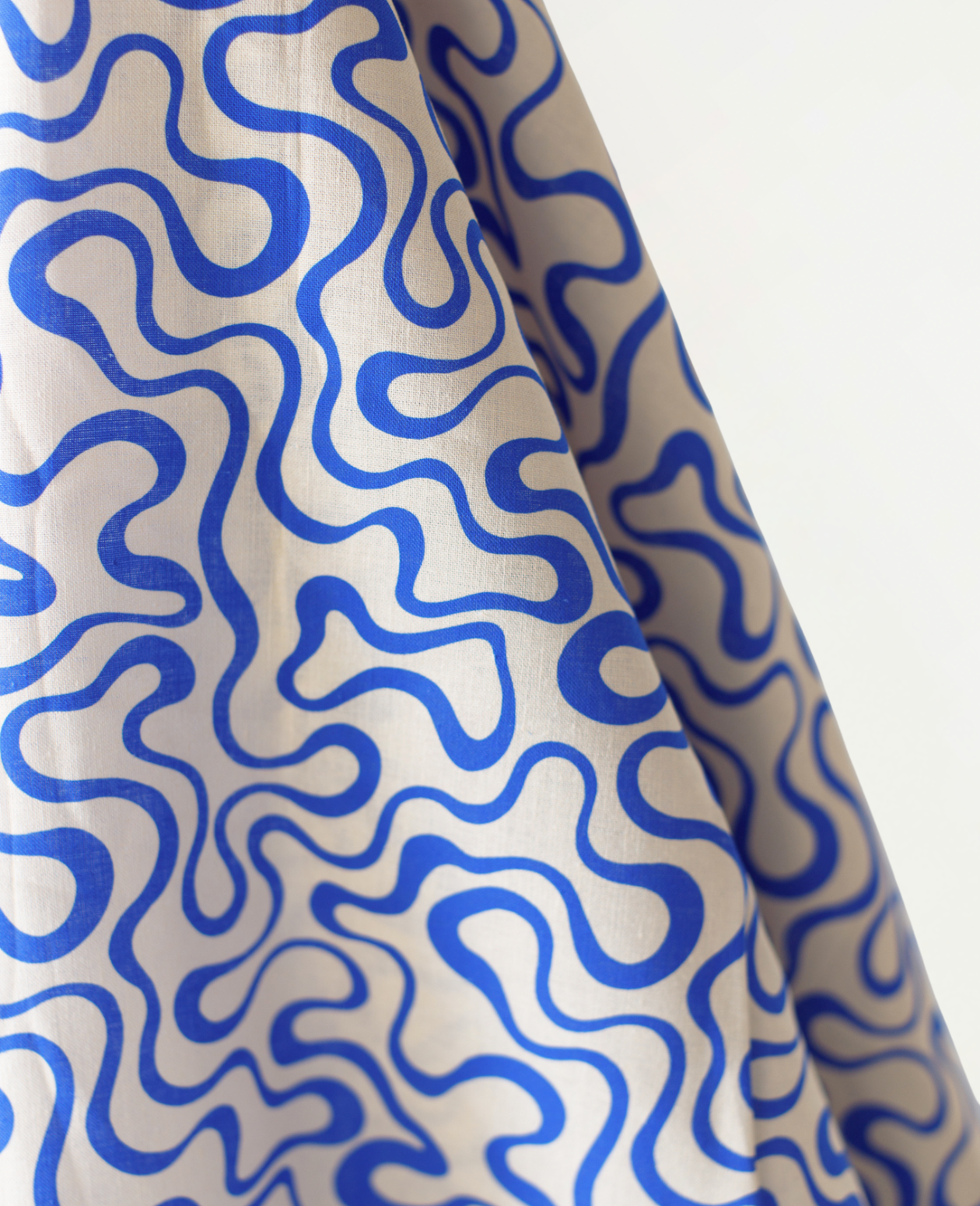 All Summer Long Cotton Linen Blue & Vanilla Swirlies Print 135 gsm $32.00 pm
