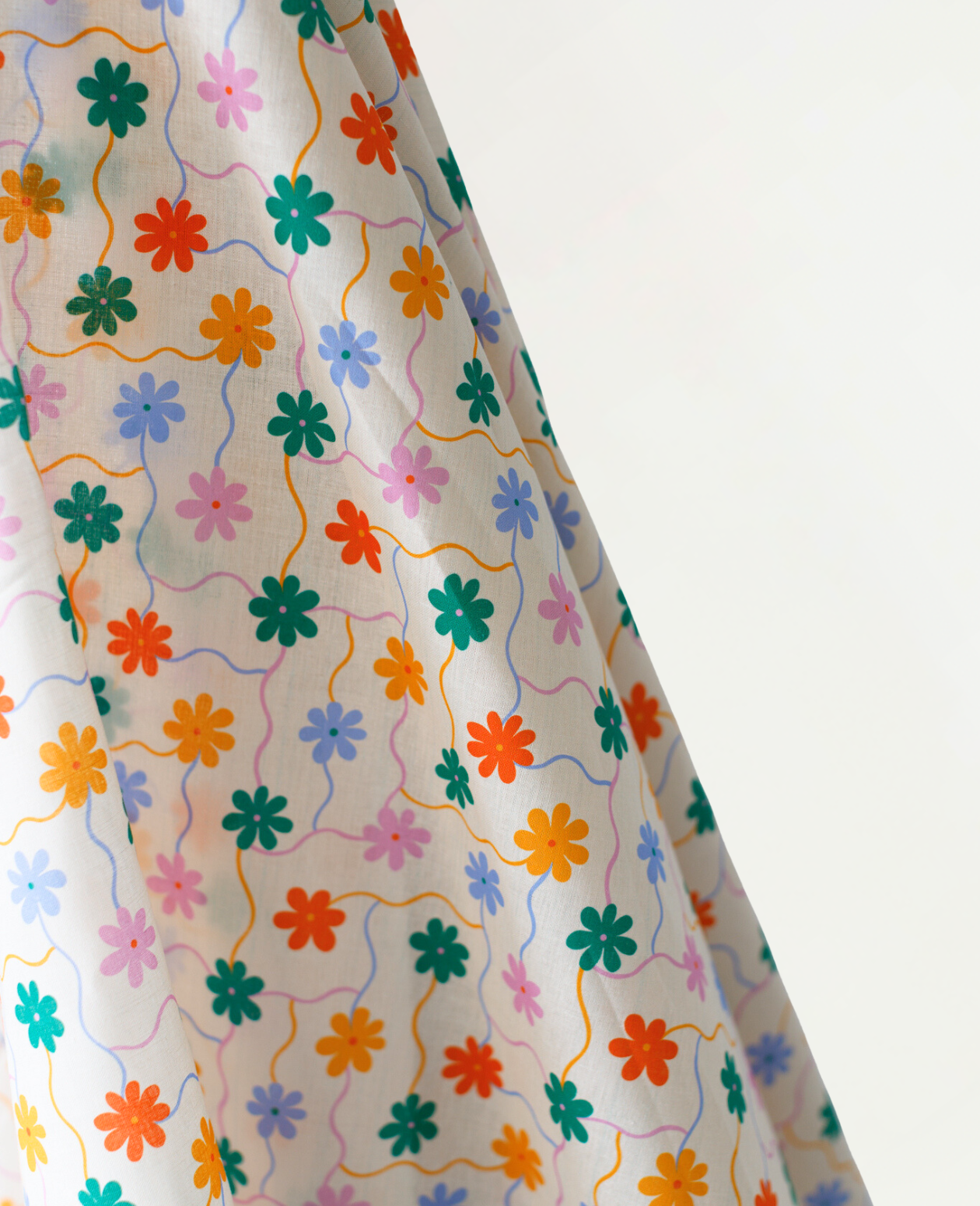 All Summer Long Cotton Linen Multi Colour Flowers on a Vine Print 135 gsm $32.00 pm