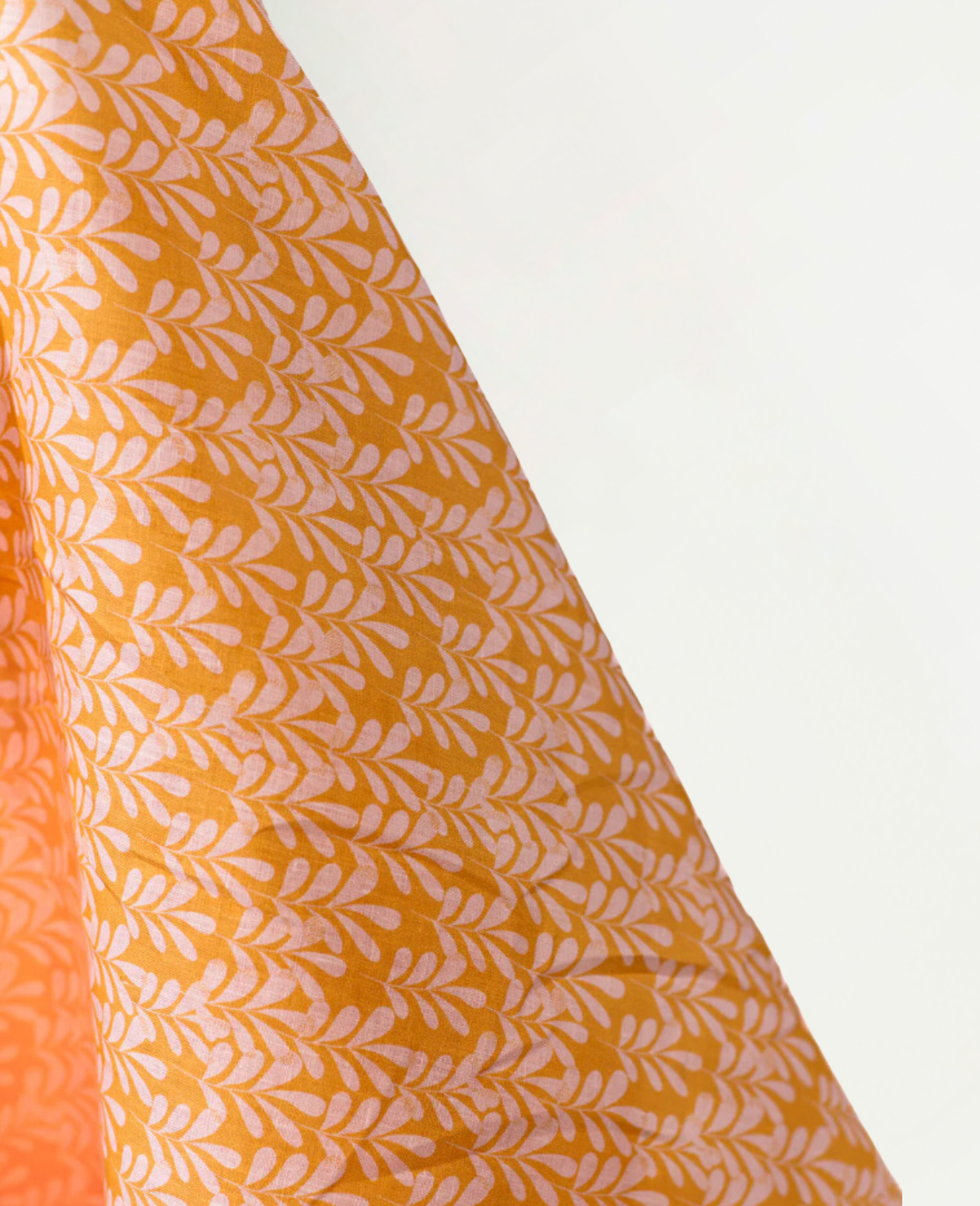 Autumn Vibes 100% Linen Orange & Pink Sprigs 140 cm wide $38 pm