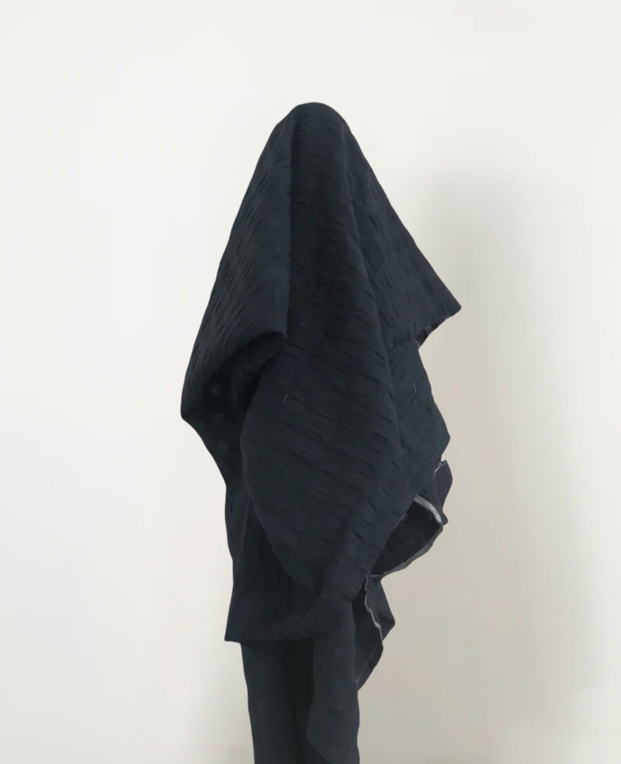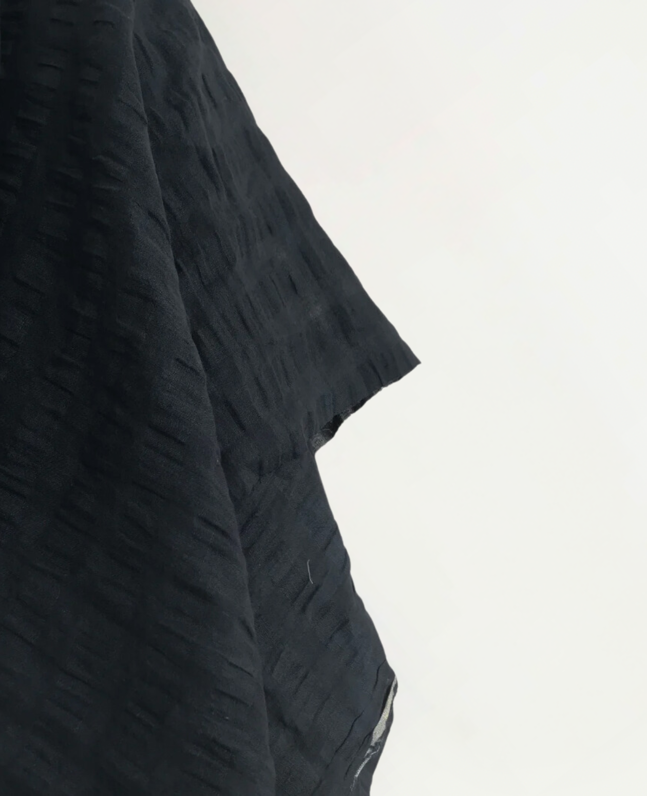 Black Cotton Linen Seersucker Check 130gsm $37pm Oeko-Tex Certified