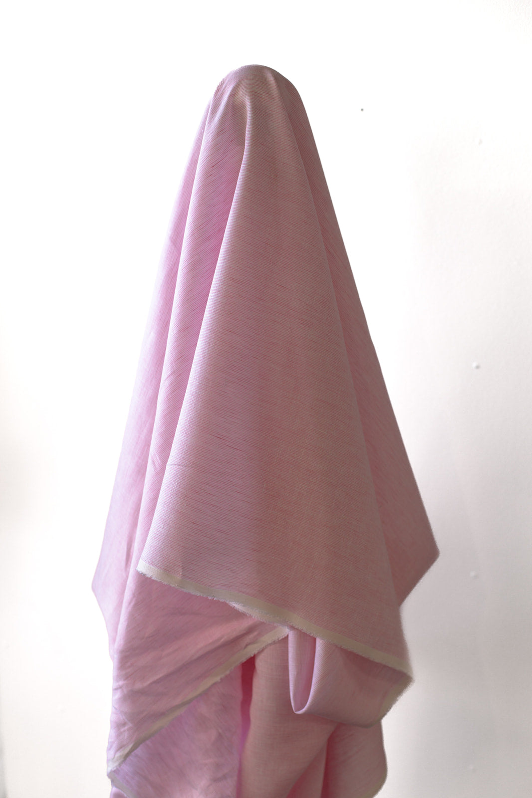 Deadstock: Pink & White Fine Pin Striped 100% Linen 140 gsm $25 pm