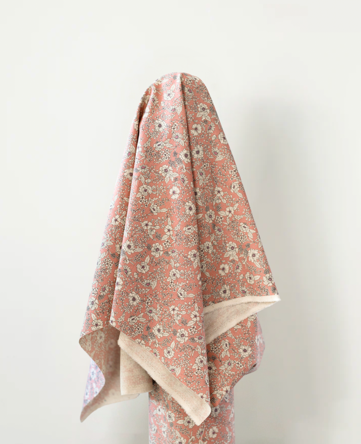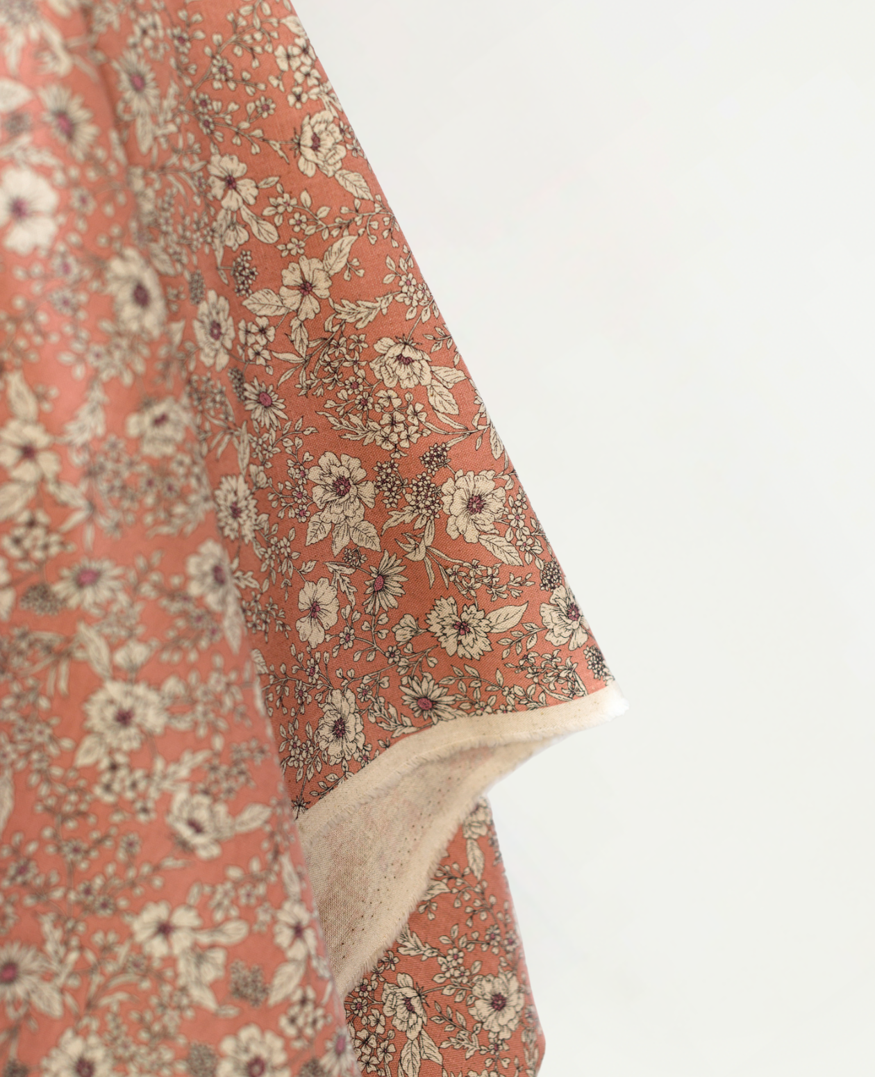 Japanese Cotton Linen Soft Floral Pale Salmon Print 196gsm $28 pm