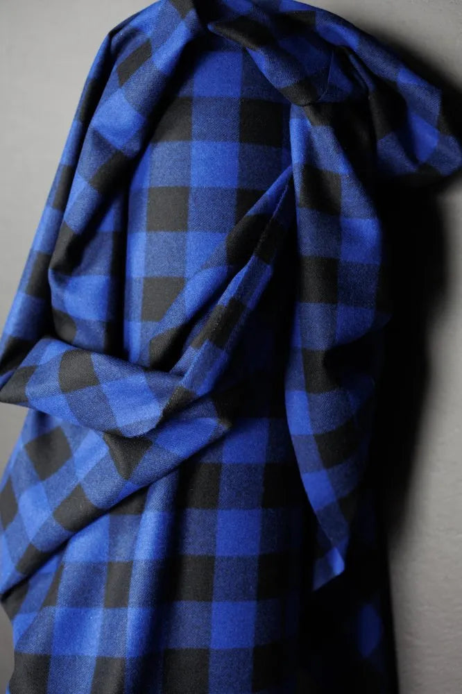 Merchant & Mills - 100% Wool Vibrant Cobalt and Black Check $68 pm