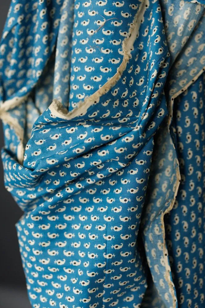 A classic ditsy paisley design on a bright blue background with a black spot. Kali is a collection of hand screen printed Indian cotton in signature Merchant & Mills colourways.