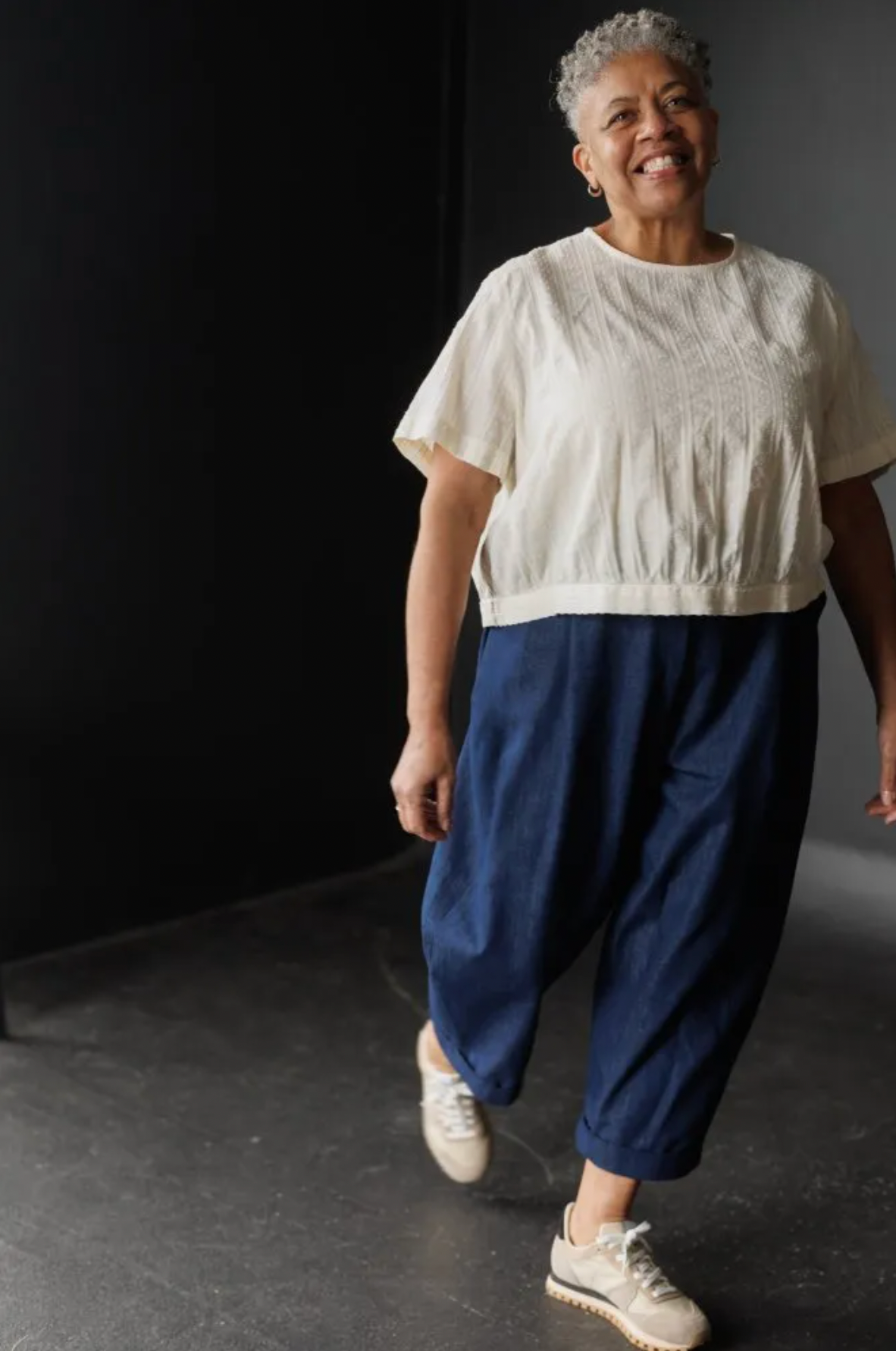Fabric suggestions - lighter weight woven fabrics such as cotton lawn of voile, cotton poplins, tencel, Indian handlooms, double gauze, choosing something like a cotton poplin that is tightly woven will a more voluminous silhouette.