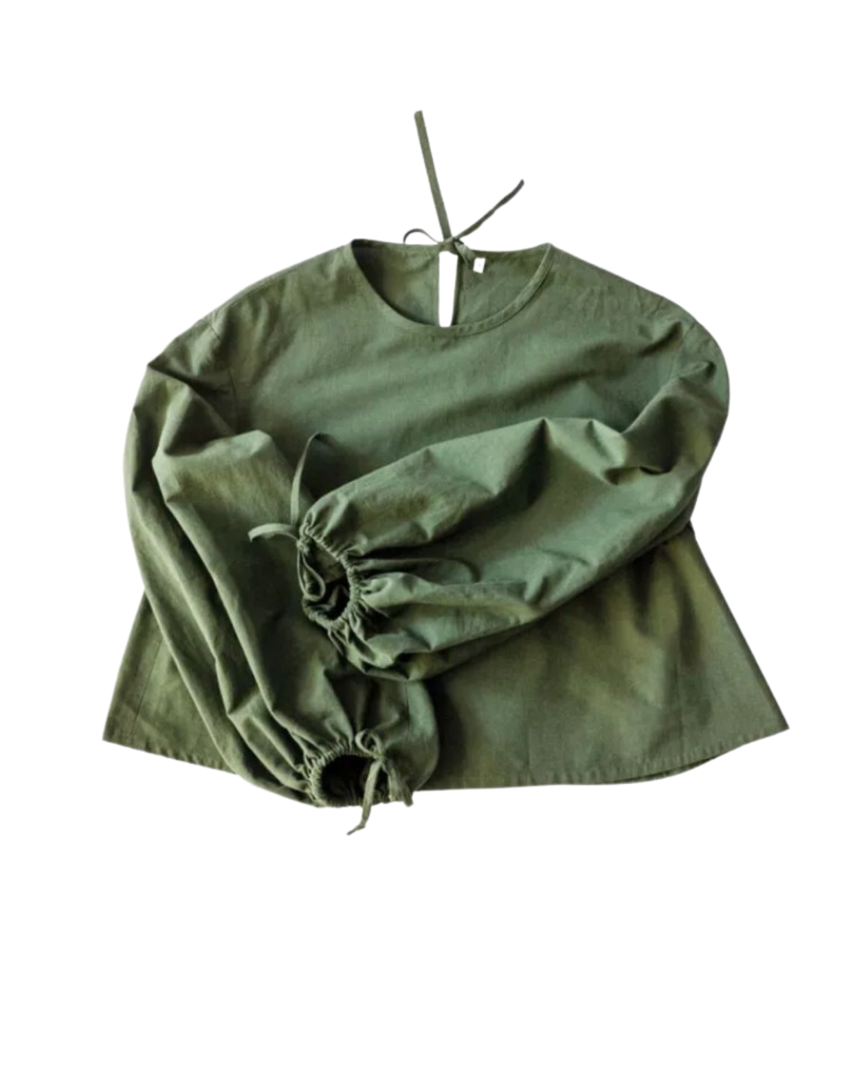 The balloon sleeves of this simple top and dress are the only detail that it requires to stand out. Less is more. The full sleeves are gathered with a tie which is threaded through a buttonhole, alternatively you can omit this buttonhole and insert elastic instead.