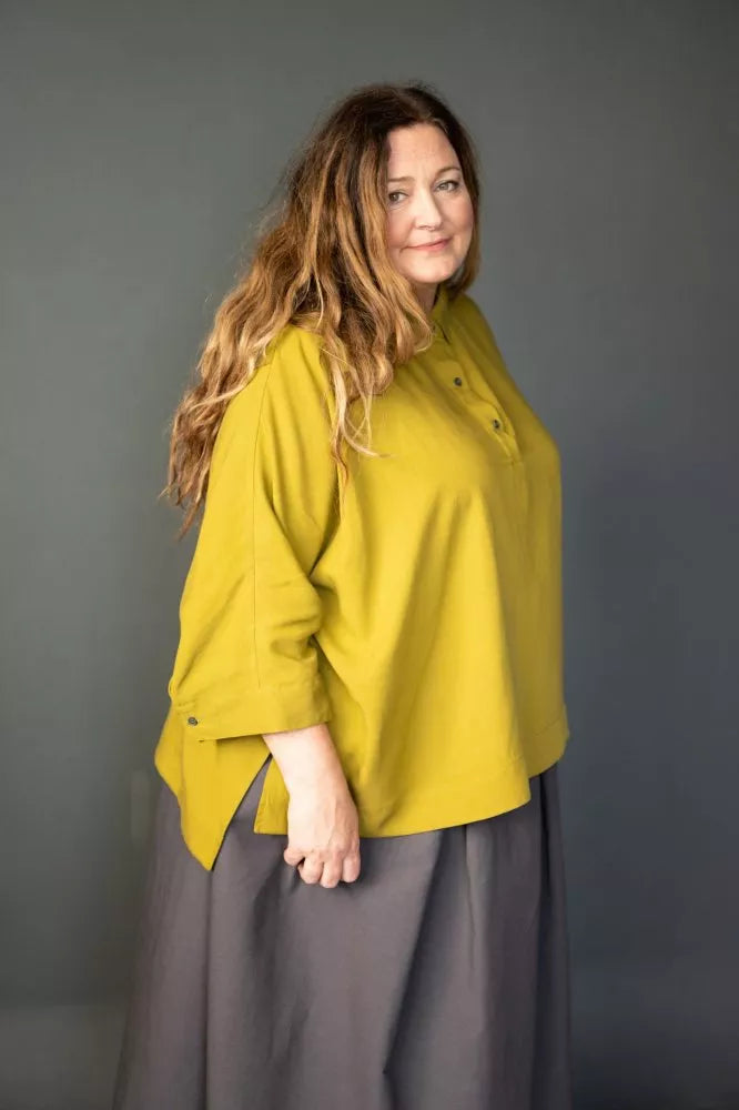 Fabric suggestions - 3-6oz linen, cotton poplin, cotton lawn, cotton double gauze, Indian handlooms, cotton chambray, Tencel, hemp/cotton blends. Do not choose anything too heavy, as the back is lower than the front it will pull down making it uncomfortable at the neck!