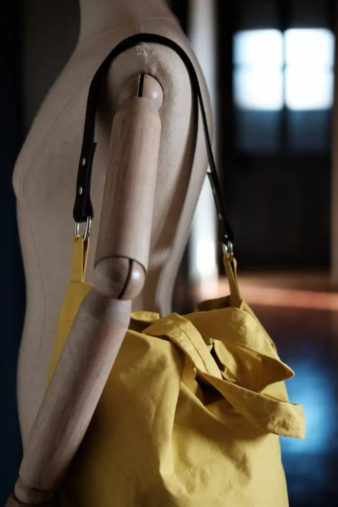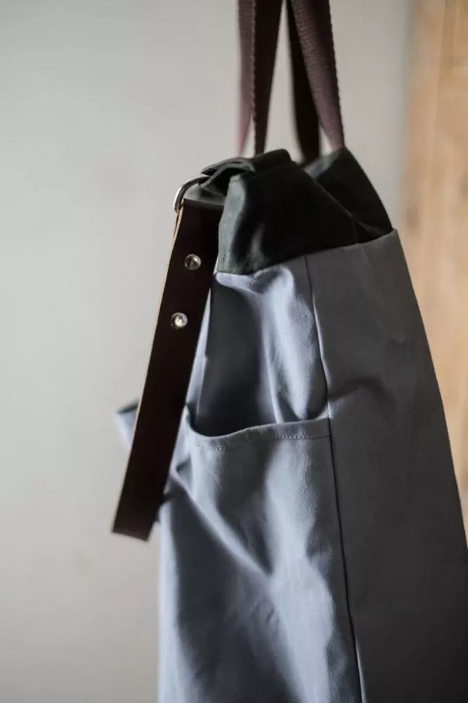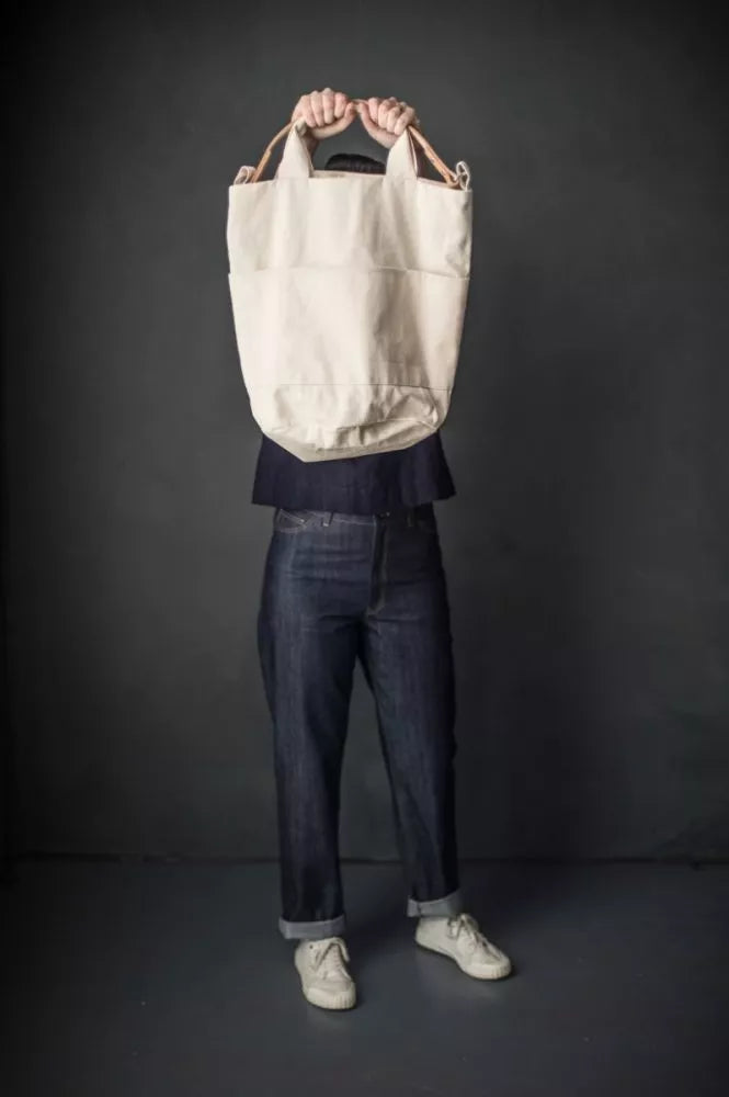 This copious bucket bag has space for an almost infinite amount of stuff. Make it in traditional British oilskin, sturdy canvas, cotton drill or denim. The most useful of bags.