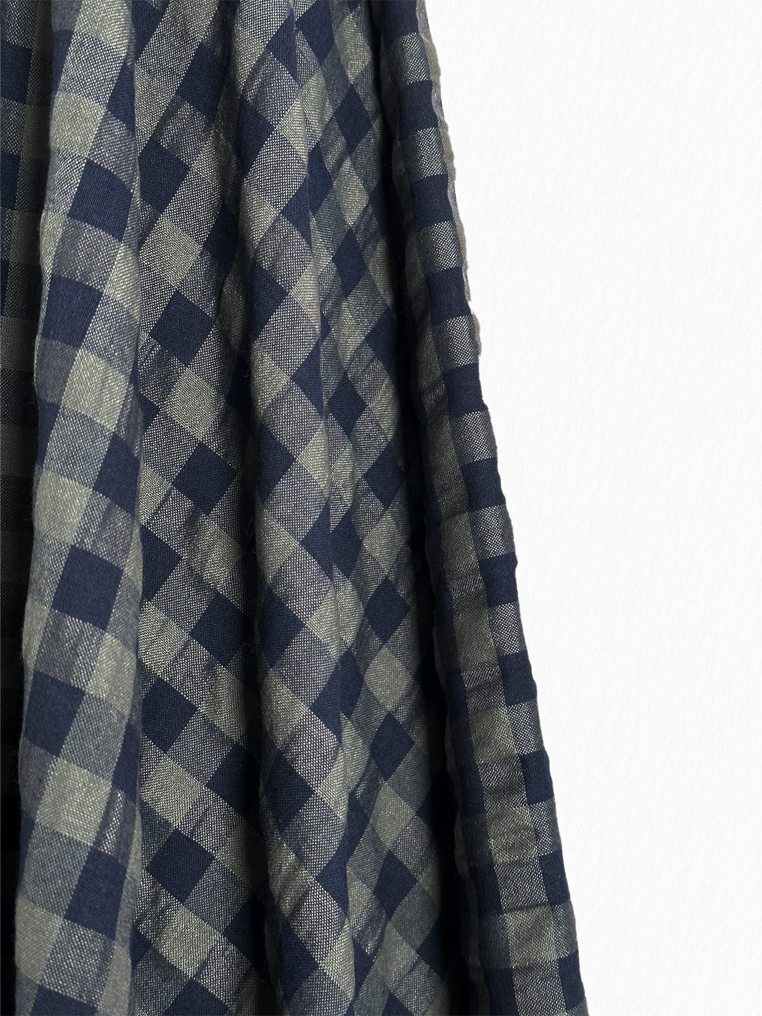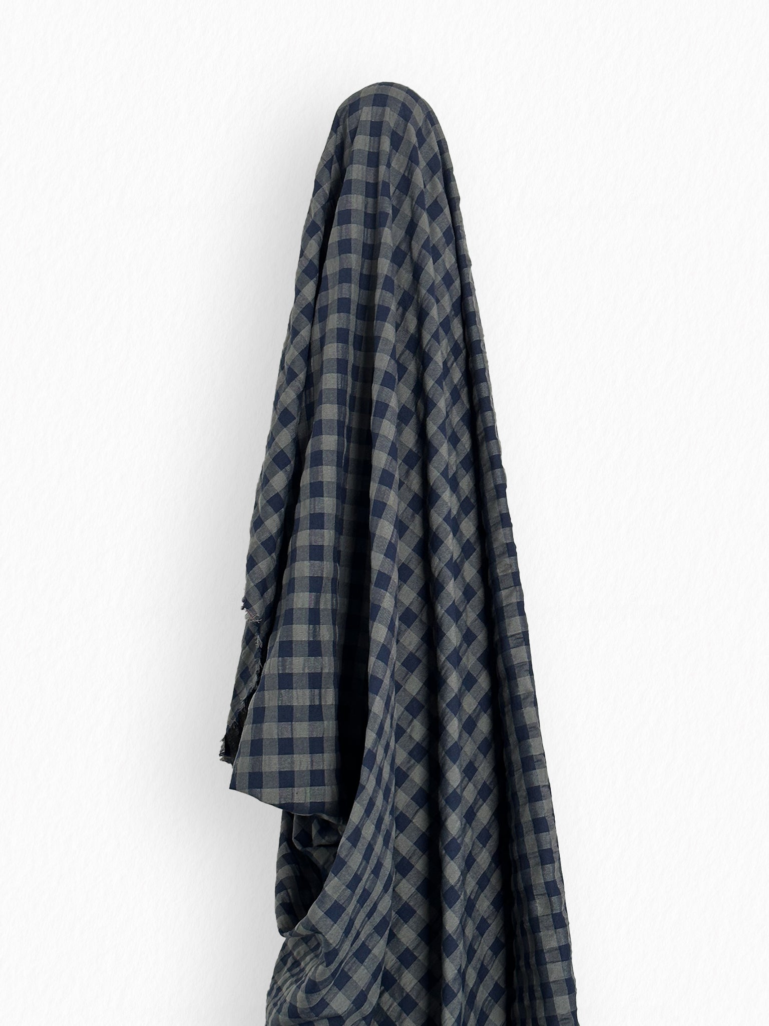 Navy & Oil Seersucker Gingham 110 gsm 10% linen 90% cotton 132cm w. $37pm