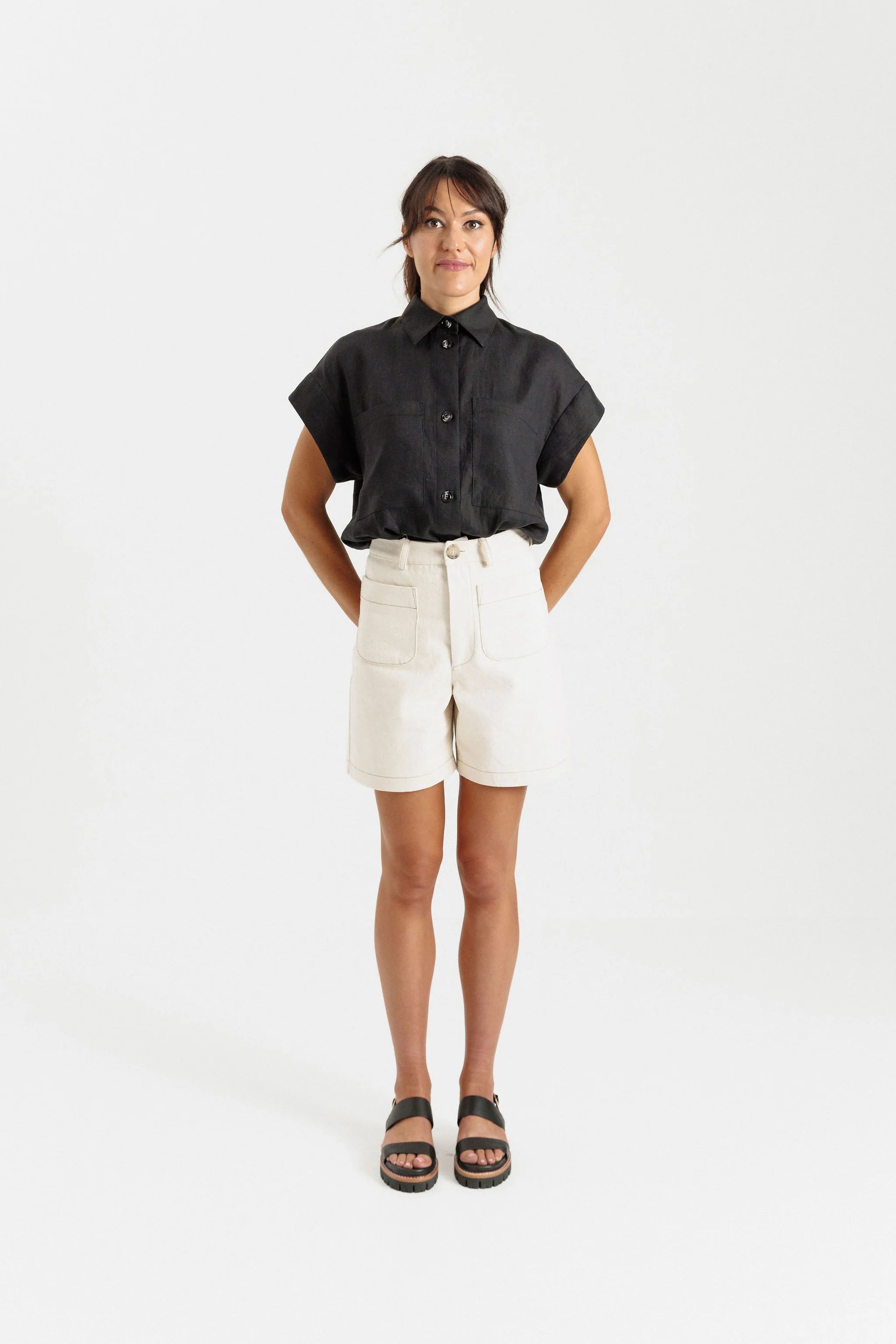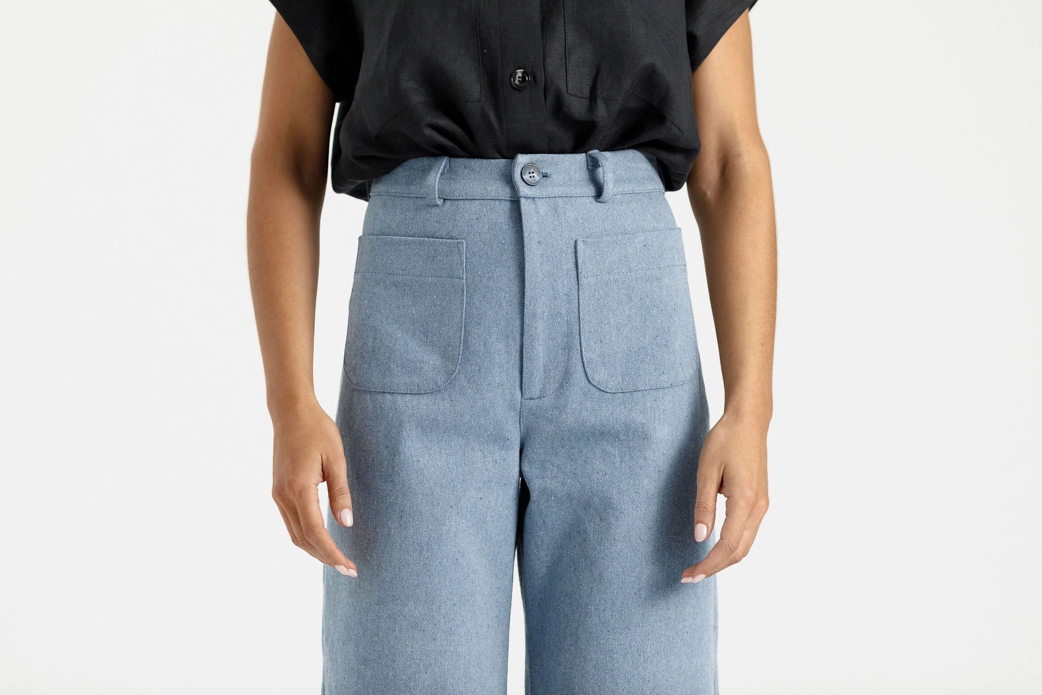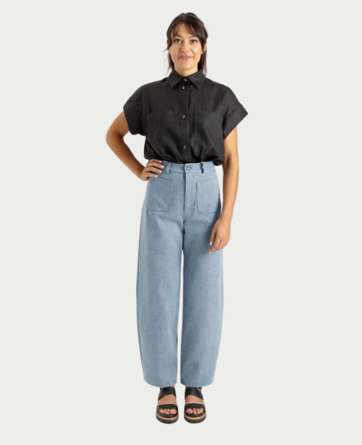 Designed for maximum comfort and style, the Sera Pant offers multiple options to fit your needs. High waisted with a choice of straight or barrel leg, you can choose between cute rounded front pockets or spacious utilitarian-style patch pockets. Back darts and large back patch pockets provide a flattering fit while keeping essentials close at hand. Can be cut as shorts for the summer months.