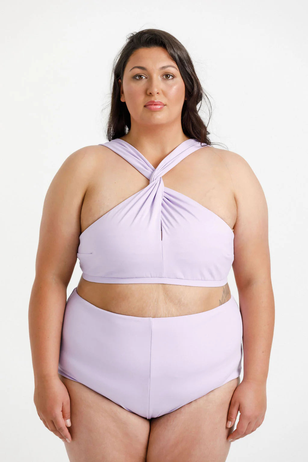 The Kaia Swimsuit is the perfect addition to your summer wardrobe. Choose between a one-piece suit or a two-piece bikini with either a short or longline top. The built in shelf bra and beautiful twist neck detail adds comfort and style to any beach day. With a variety of waist heights and cuts, you can choose the perfect fit for your body.