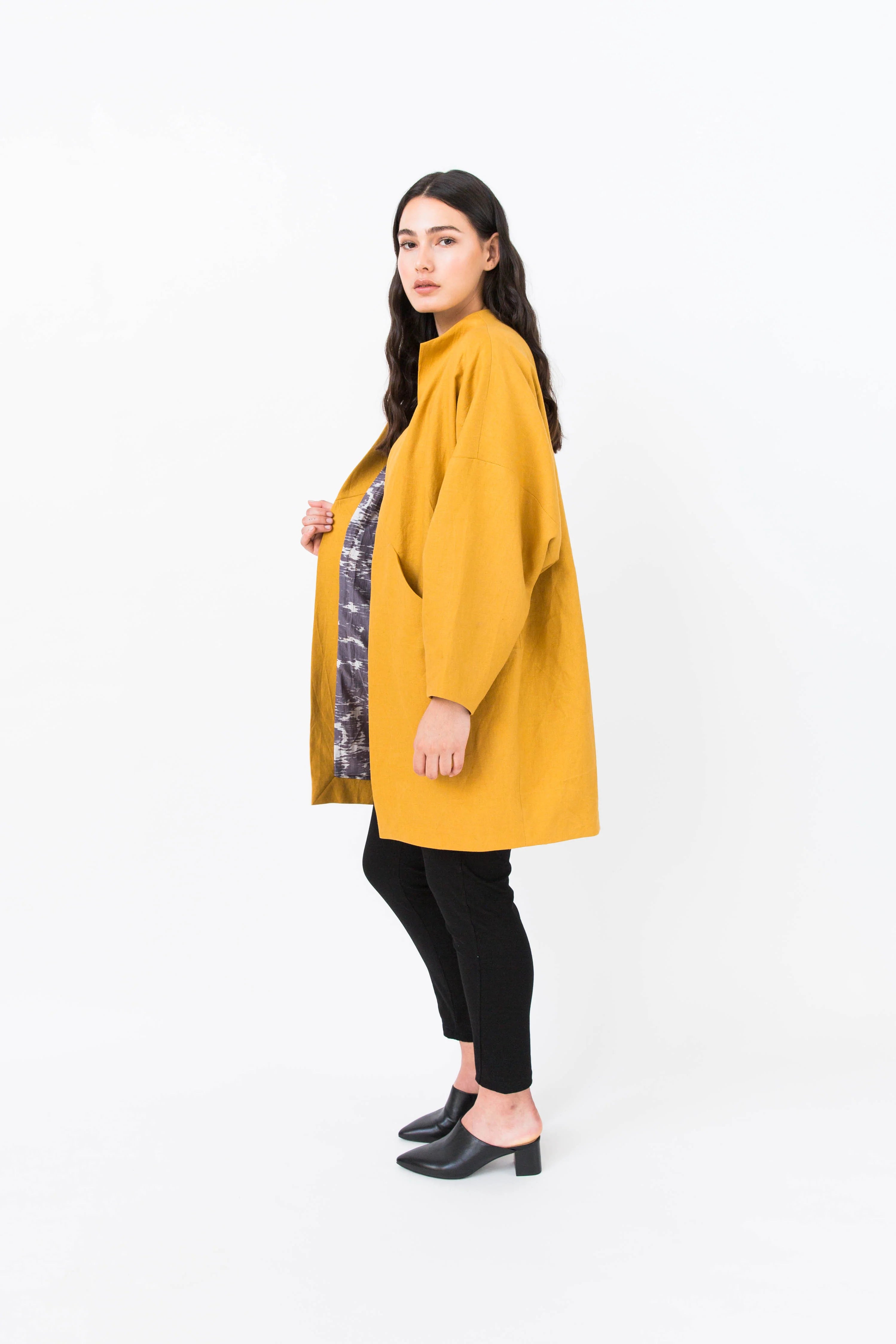 Go bold with our iconic and dramatic cocoon coat. Choose a lightweight fabric for a spring/summer version, or a cosy wool for the cooler days. Our fully lined Nova features angled seaming with pockets hidden in the front, and is a pattern for every season. Choose between cropped or long sleeves, the full length coat or the shorter jacket. It’ll be your fave go-to piece all year round.