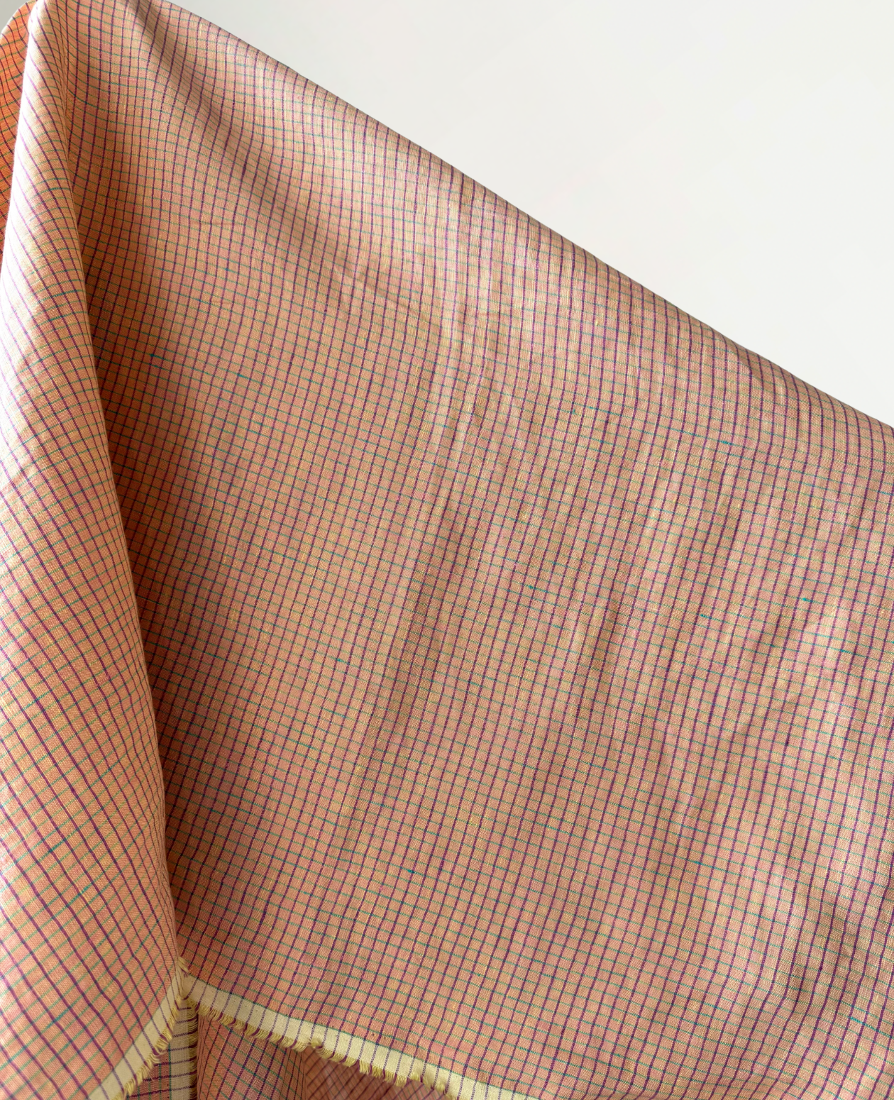Summer Love: 100% Linen Peach Check 130 gsm $40 pm