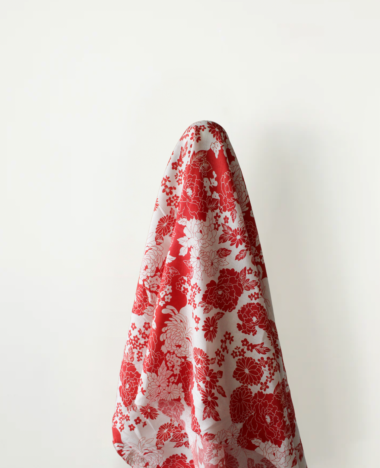 Summer Love: 100% Linen, Red & White Chrysanthemum Print 140 cm w, 145 gsm $40